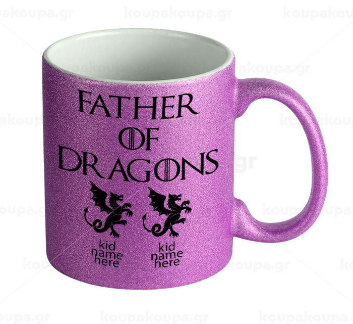 GOT, Father of Dragons (με ονόματα παιδικά), Κούπα Μωβ Glitter που γυαλίζει, κεραμική, 330ml