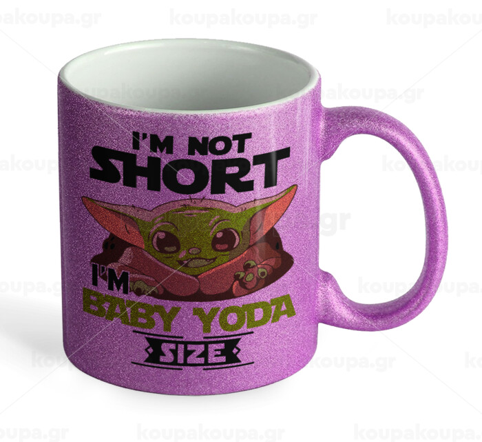 I'm not short, i'm Baby Yoda size, Κούπα Μωβ Glitter που γυαλίζει, κεραμική, 330ml