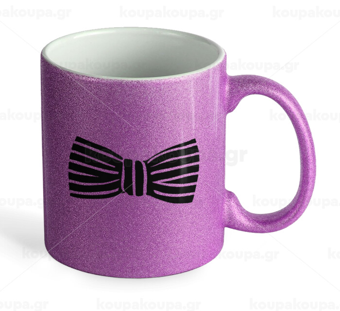 Bow tie, Κούπα Μωβ Glitter που γυαλίζει, κεραμική, 330ml