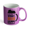 Don't worry BEER Happy, Κούπα Μωβ Glitter που γυαλίζει, κεραμική, 330ml