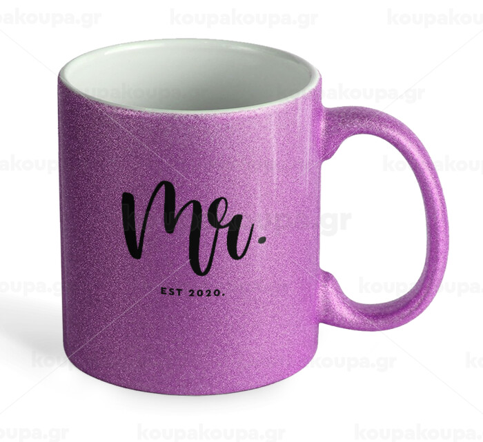 Mr & Mrs (Mr), Κούπα Μωβ Glitter που γυαλίζει, κεραμική, 330ml