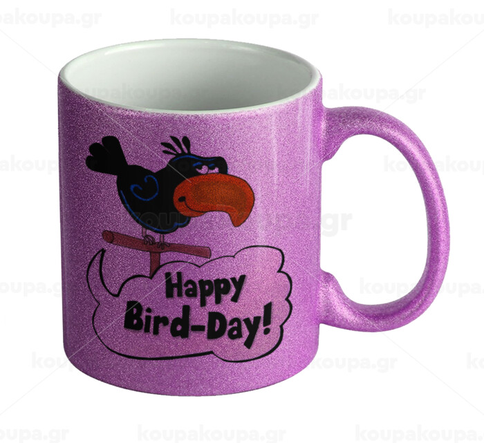 Happy Bird Day, Κούπα Μωβ Glitter που γυαλίζει, κεραμική, 330ml