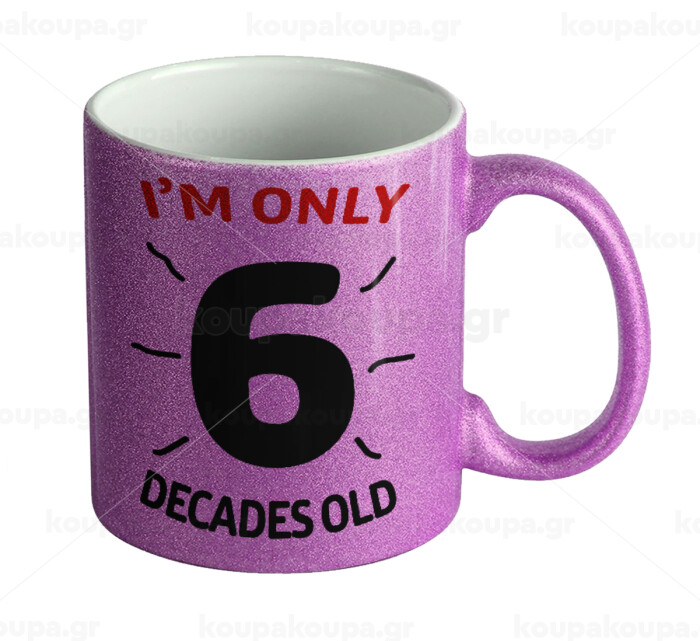 I'm only NUMBER decades OLD, Κούπα Μωβ Glitter που γυαλίζει, κεραμική, 330ml