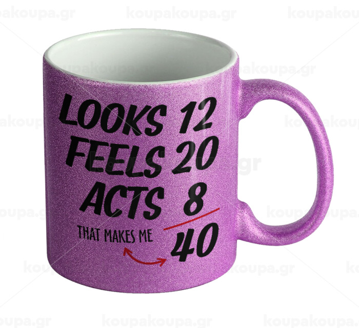 Looks, feels, acts LIKE your AGE, Κούπα Μωβ Glitter που γυαλίζει, κεραμική, 330ml