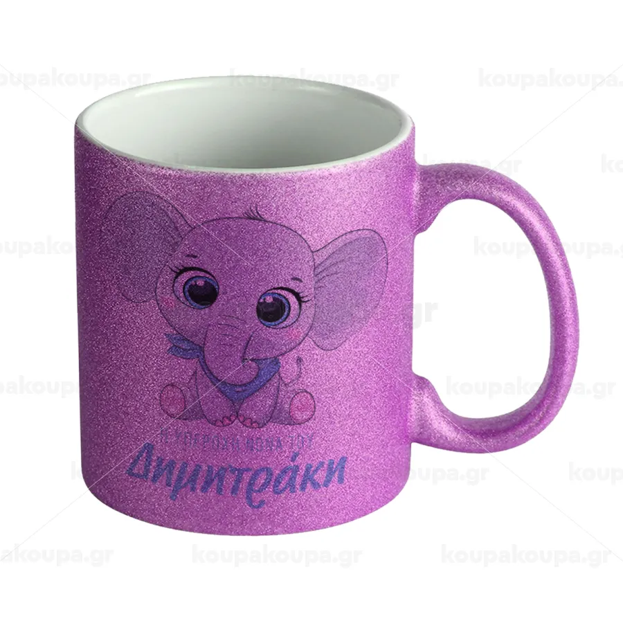 Η νονά μου, ελεφαντάκι γαλάζιο, Κούπα Μωβ Glitter που γυαλίζει, κεραμική, 330ml