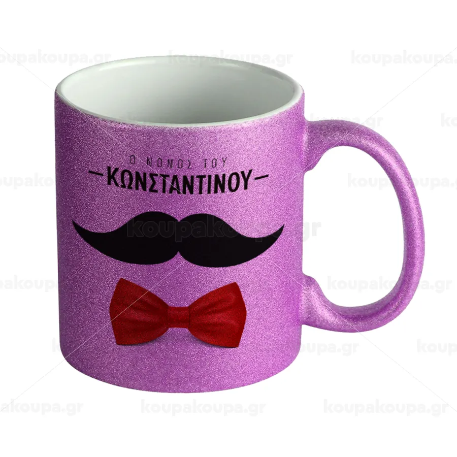 Ο νονός μου, μουστάκι με παπιγιόν, Κούπα Μωβ Glitter που γυαλίζει, κεραμική, 330ml