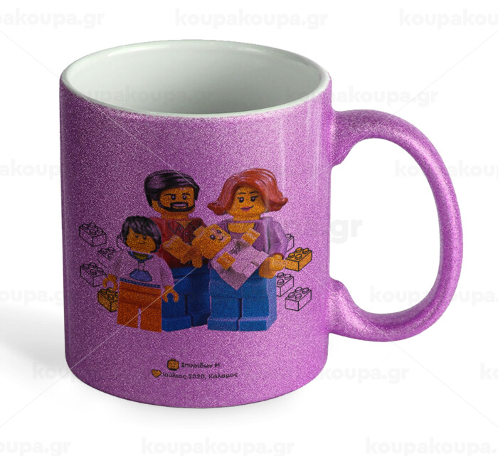 Τύπου Lego family, Κούπα Μωβ Glitter που γυαλίζει, κεραμική, 330ml