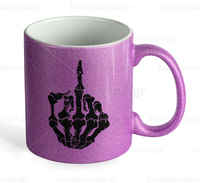 Middle finger, Κούπα Μωβ Glitter που γυαλίζει, κεραμική, 330ml