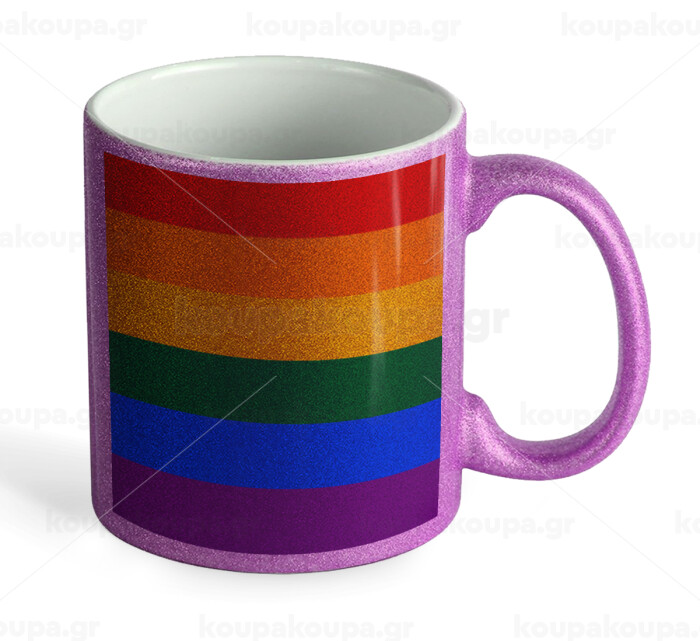 Rainbow flag (LGBT) , Κούπα Μωβ Glitter που γυαλίζει, κεραμική, 330ml