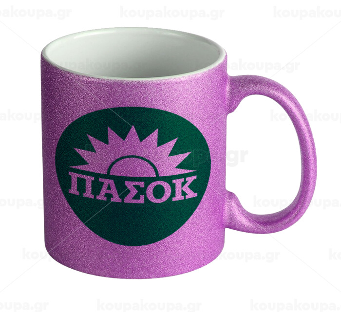 PASOK Green/White, Κούπα Μωβ Glitter που γυαλίζει, κεραμική, 330ml