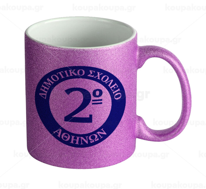 Έμβλημα Σχολικό μπλε, Κούπα Μωβ Glitter που γυαλίζει, κεραμική, 330ml