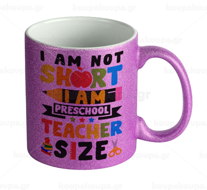 I Am Not Short I Am Preschool Teacher Size, Κούπα Μωβ Glitter που γυαλίζει, κεραμική, 330ml