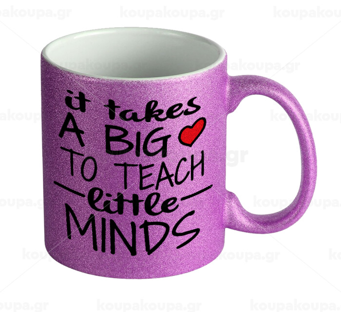 It takes big heart to teach little minds, Κούπα Μωβ Glitter που γυαλίζει, κεραμική, 330ml