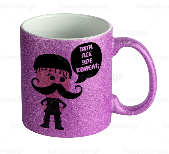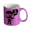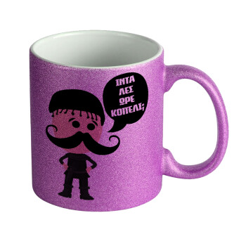Κρητικός "Ίντα λες ωρέ κοπέλι", Κούπα Μωβ Glitter που γυαλίζει, κεραμική, 330ml