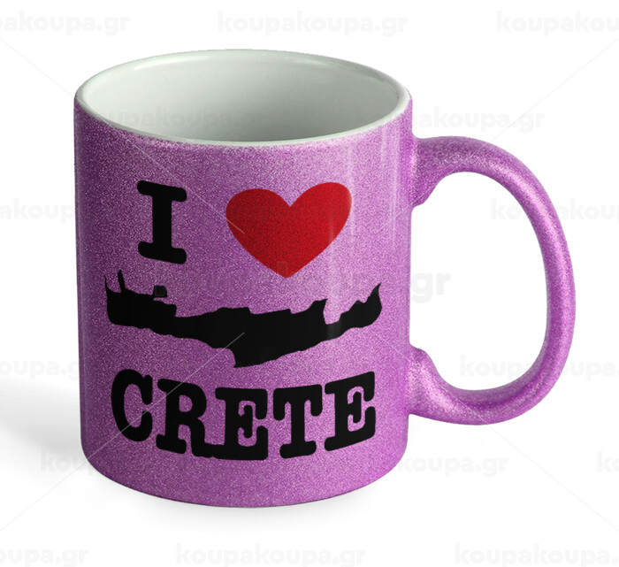 I Love Crete, Κούπα Μωβ Glitter που γυαλίζει, κεραμική, 330ml
