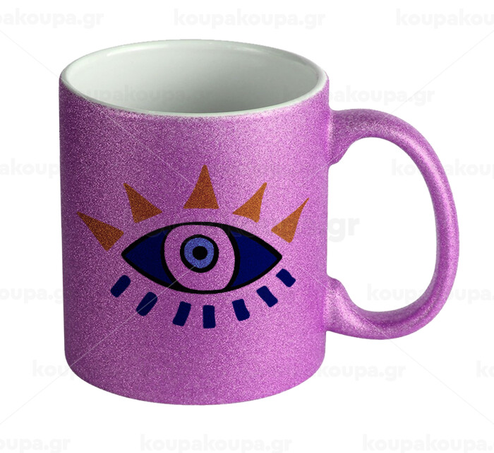 blue evil eye, Κούπα Μωβ Glitter που γυαλίζει, κεραμική, 330ml