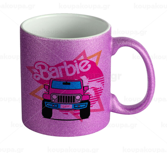 Barbie car, Κούπα Μωβ Glitter που γυαλίζει, κεραμική, 330ml