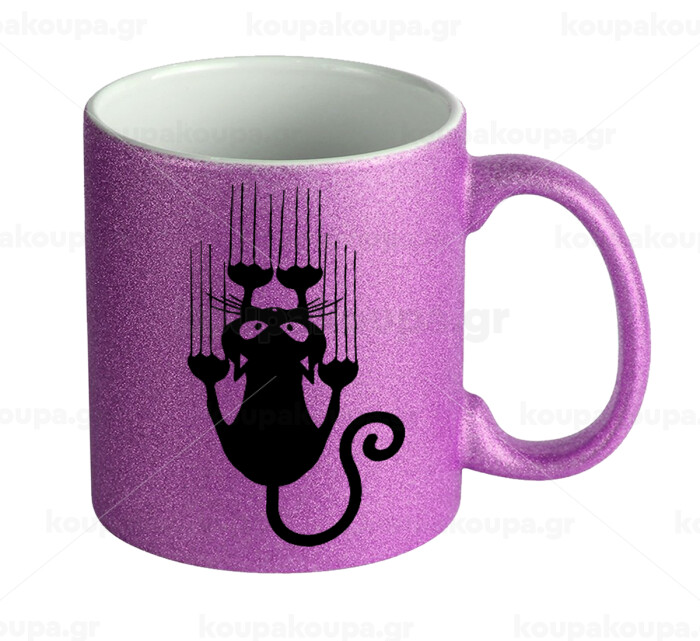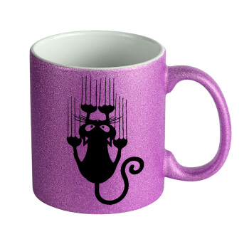 Cat scratching, Κούπα Μωβ Glitter που γυαλίζει, κεραμική, 330ml