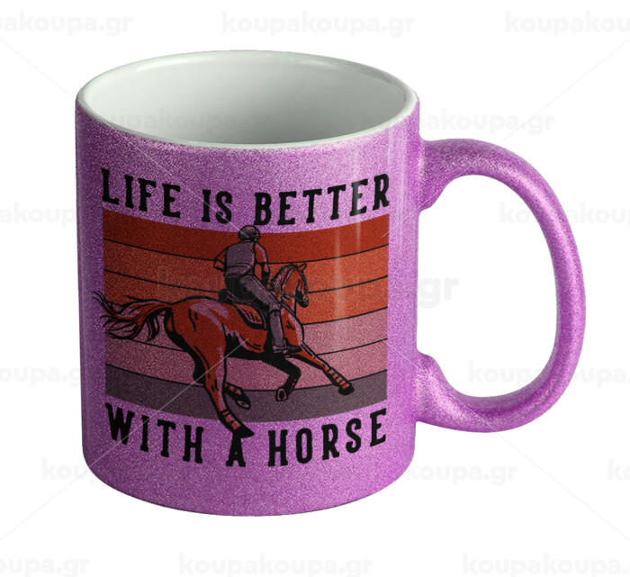 Life is Better with a Horse, Κούπα Μωβ Glitter που γυαλίζει, κεραμική, 330ml