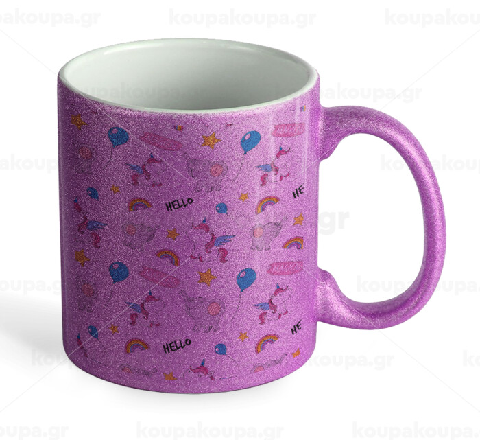 Happy Clouds Doodle, Κούπα Μωβ Glitter που γυαλίζει, κεραμική, 330ml