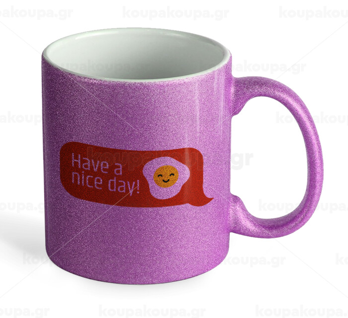 Have a nice day Emoji, Κούπα Μωβ Glitter που γυαλίζει, κεραμική, 330ml