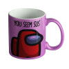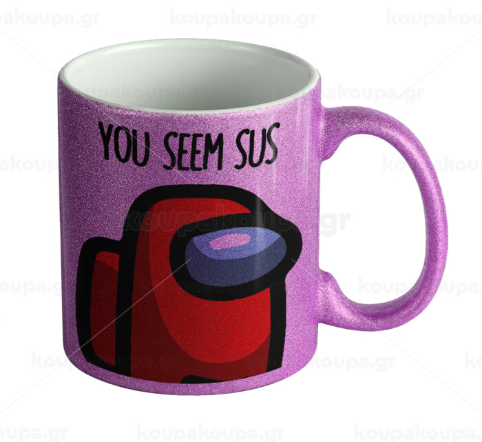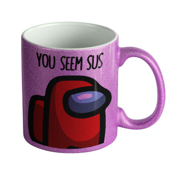 Among US, you seem sus, Κούπα Μωβ Glitter που γυαλίζει, κεραμική, 330ml