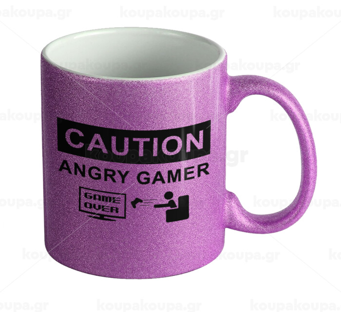 Caution, angry gamer!, Κούπα Μωβ Glitter που γυαλίζει, κεραμική, 330ml