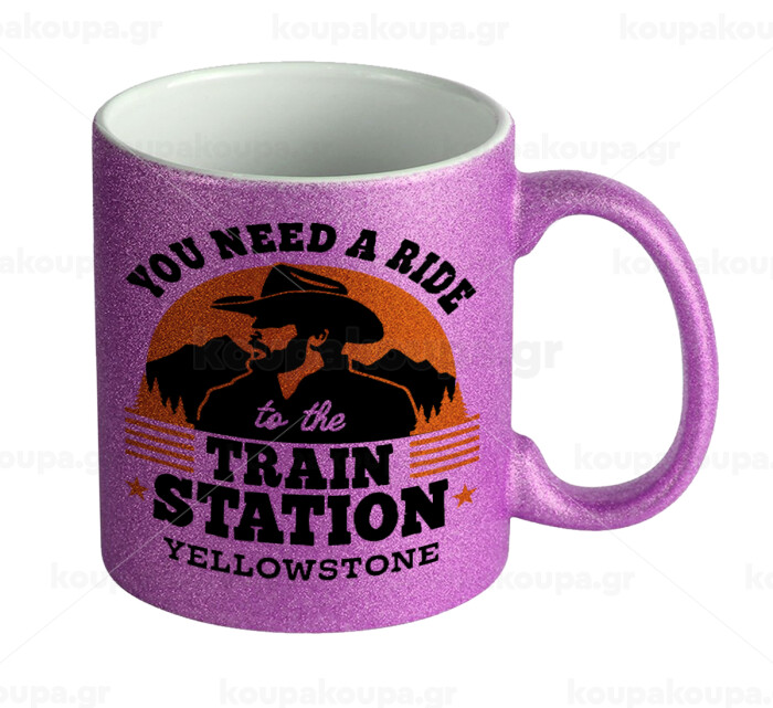 You need a ride to the train station, Κούπα Μωβ Glitter που γυαλίζει, κεραμική, 330ml
