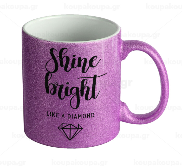 Bright, Shine like a Diamond, Κούπα Μωβ Glitter που γυαλίζει, κεραμική, 330ml