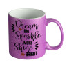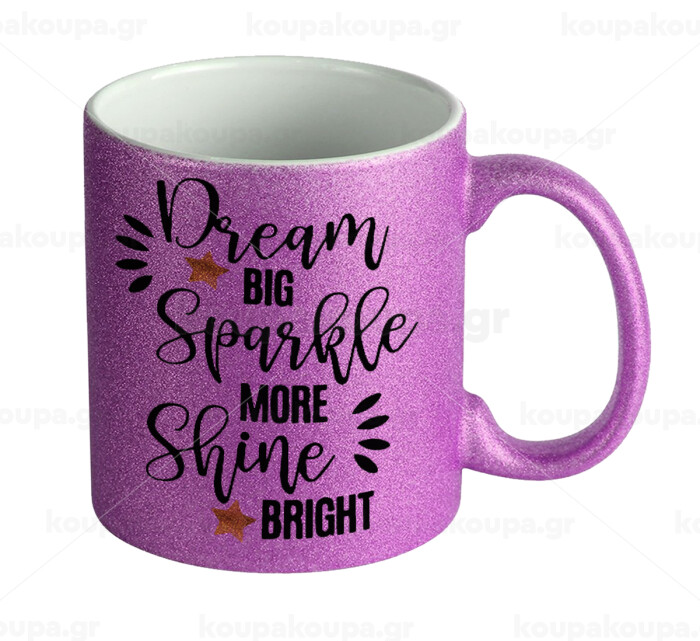 Dream big, Sparkle more, Shine bright, Κούπα Μωβ Glitter που γυαλίζει, κεραμική, 330ml