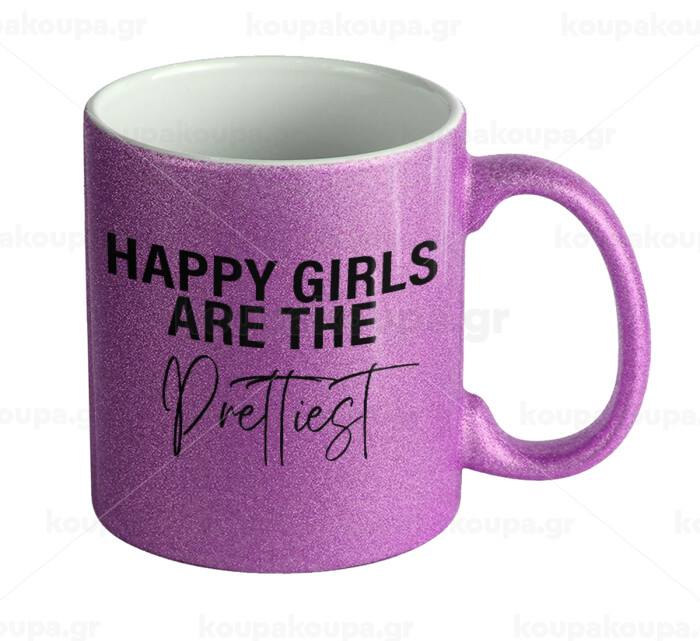 Happy girls are the prettiest, Κούπα Μωβ Glitter που γυαλίζει, κεραμική, 330ml