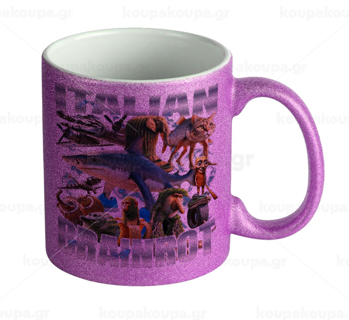 Italian Brainrot, Κούπα Μωβ Glitter που γυαλίζει, κεραμική, 330ml