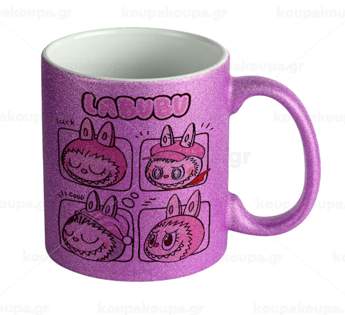 Labubu pink, Κούπα Μωβ Glitter που γυαλίζει, κεραμική, 330ml