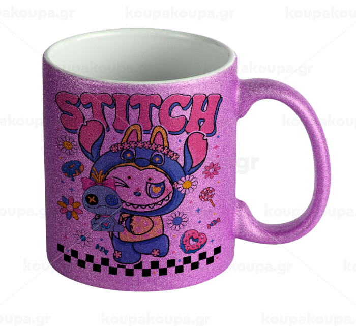 Labubu Stitch, Κούπα Μωβ Glitter που γυαλίζει, κεραμική, 330ml