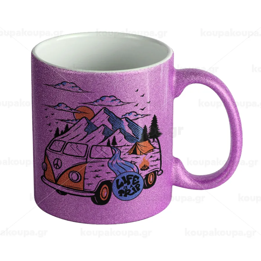 Life is a trip, Κούπα Μωβ Glitter που γυαλίζει, κεραμική, 330ml