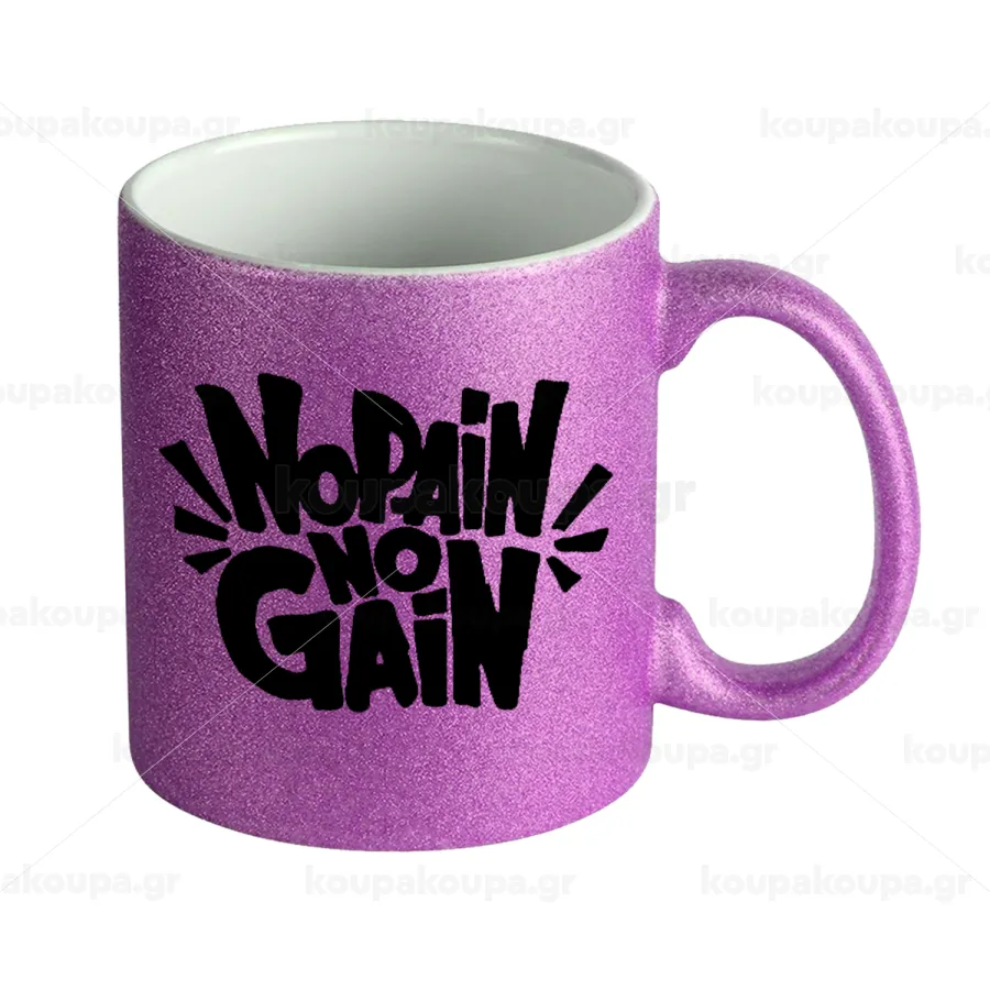 No pain no gain, Κούπα Μωβ Glitter που γυαλίζει, κεραμική, 330ml