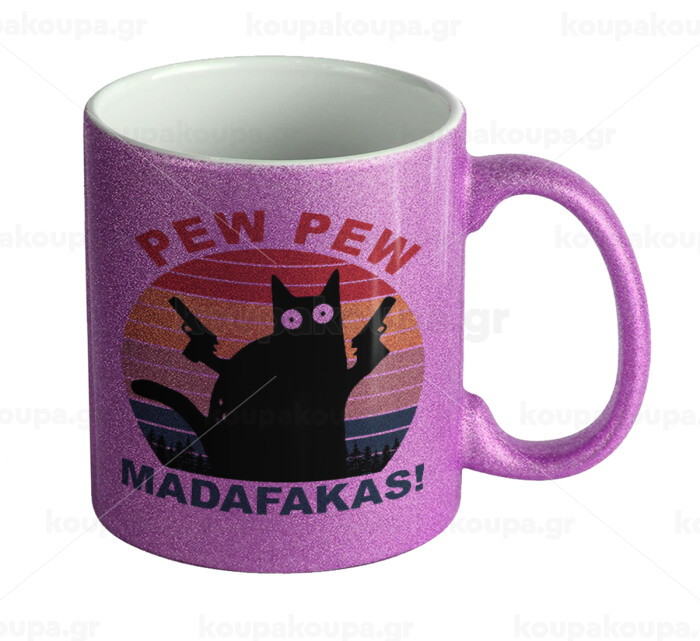 PEW PEW madafakas, Κούπα Μωβ Glitter που γυαλίζει, κεραμική, 330ml
