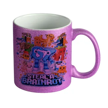 Steal a Brainrot Six Seven, Κούπα Μωβ Glitter που γυαλίζει, κεραμική, 330ml