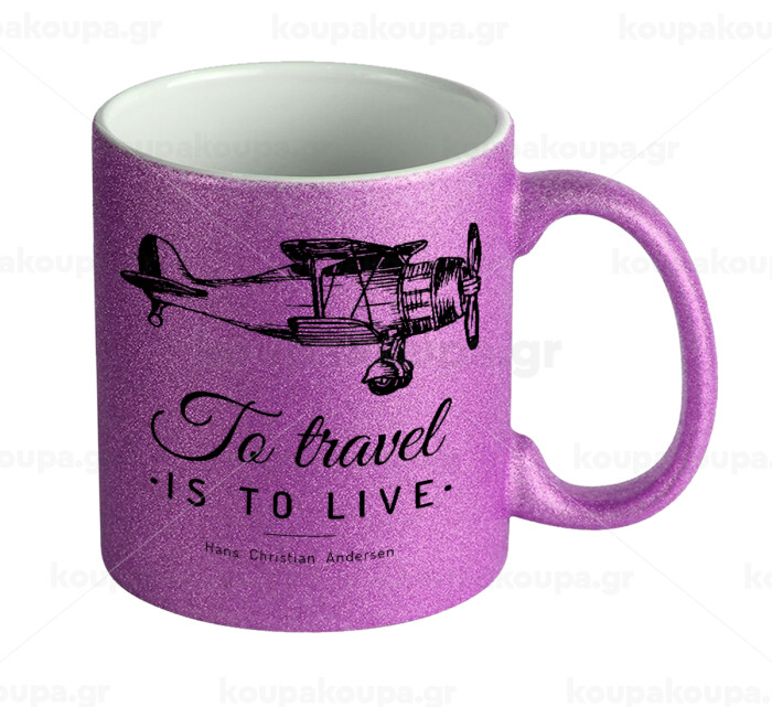 To travel is to live, Κούπα Μωβ Glitter που γυαλίζει, κεραμική, 330ml