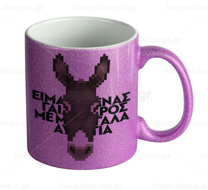 Είμαι ένας γάιδαρος με μεγάλα αυτιά., Κούπα Μωβ Glitter που γυαλίζει, κεραμική, 330ml