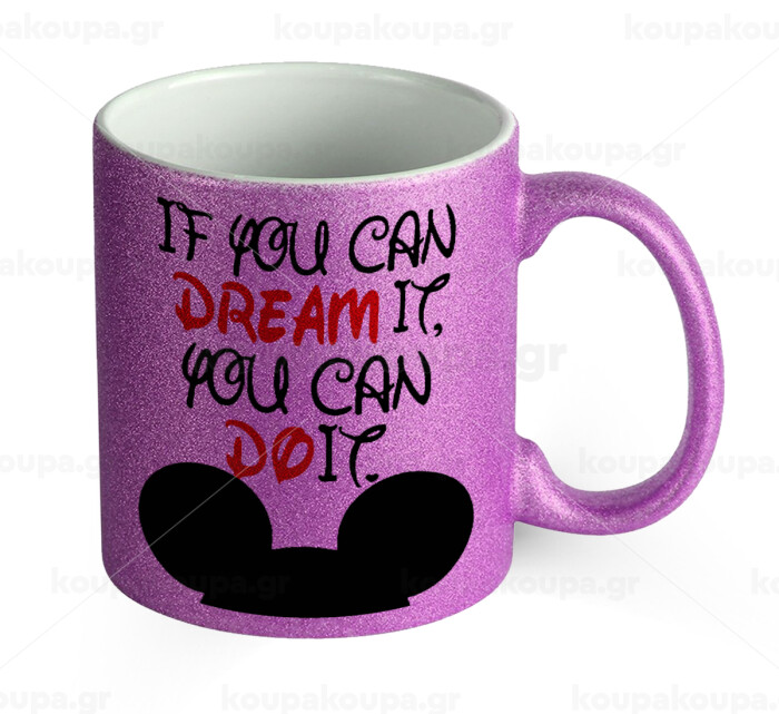 If you can dream it, you can do it, Κούπα Μωβ Glitter που γυαλίζει, κεραμική, 330ml