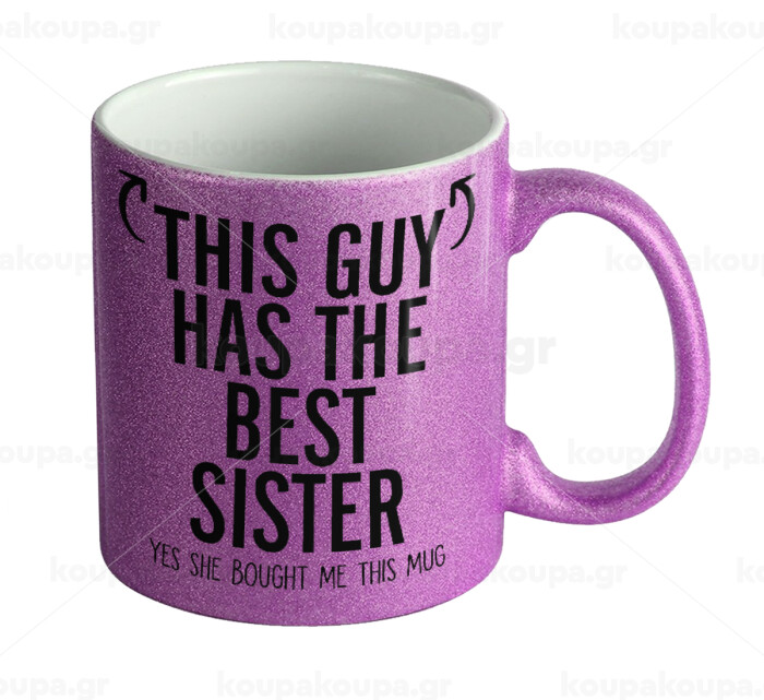 This guy has the best Sister, Κούπα Μωβ Glitter που γυαλίζει, κεραμική, 330ml