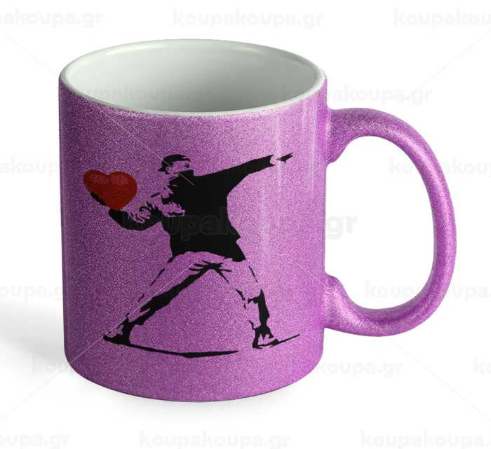 Banksy (The heart thrower), Κούπα Μωβ Glitter που γυαλίζει, κεραμική, 330ml