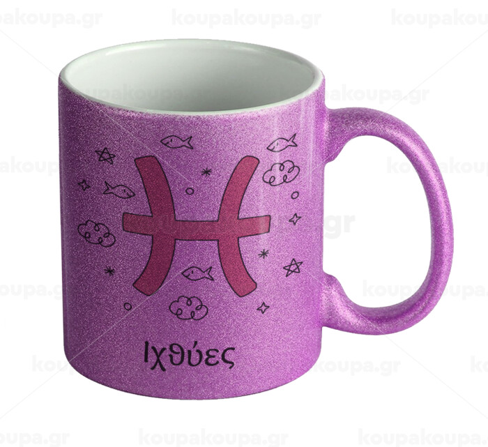 Ζώδια Ιχθύες, Κούπα Μωβ Glitter που γυαλίζει, κεραμική, 330ml