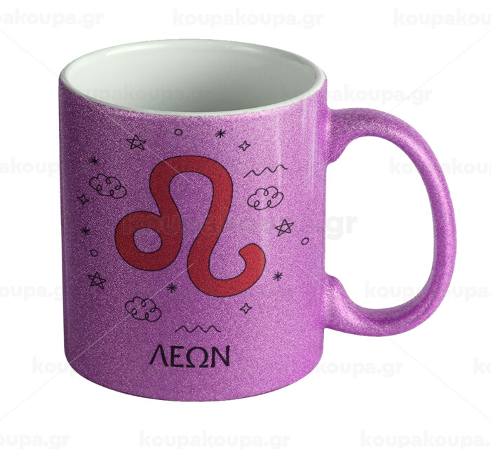 Ζώδια Λέων, Κούπα Μωβ Glitter που γυαλίζει, κεραμική, 330ml