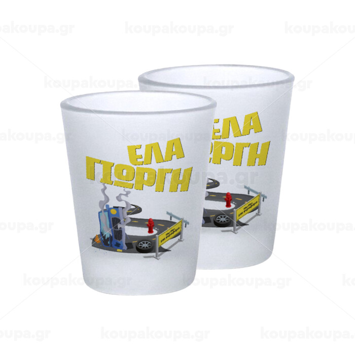 Έλα Γιώργη, πω πω μια στροφάρα, Σφηνοπότηρα γυάλινα 45ml του πάγου (2 τεμάχια)