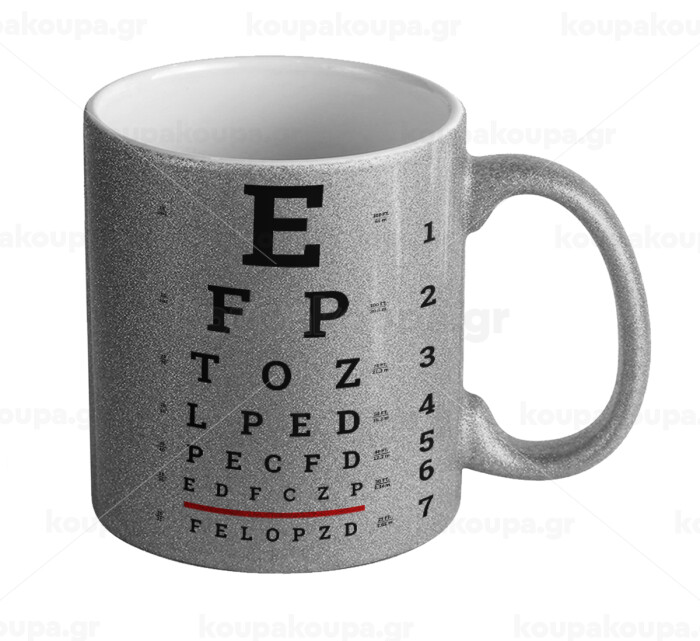 EYE test chart, Κούπα Ασημένια Glitter που γυαλίζει, κεραμική, 330ml