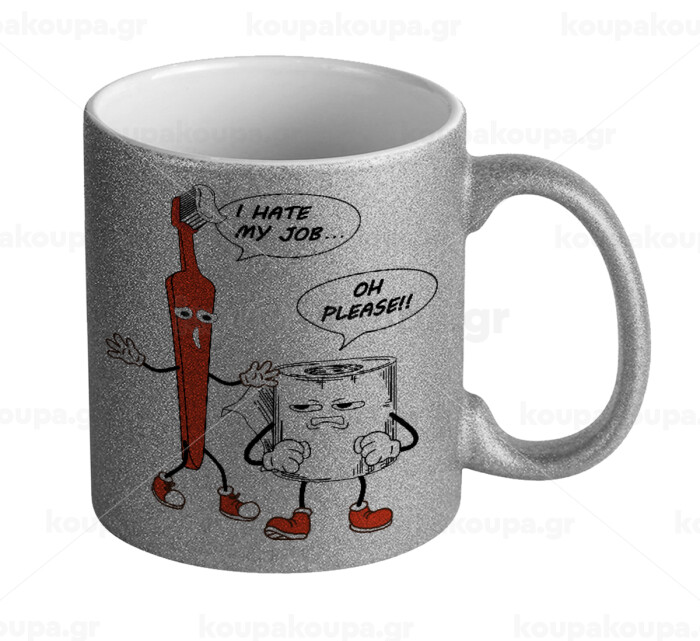 I hate my job, Κούπα Ασημένια Glitter που γυαλίζει, κεραμική, 330ml