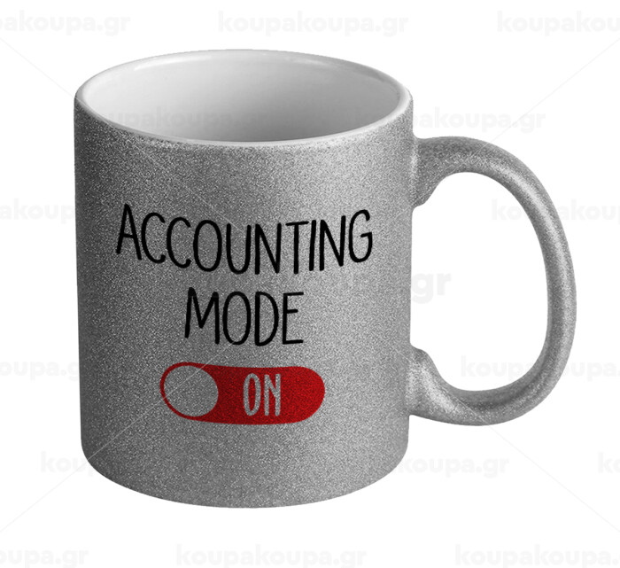 ACCOUNTANT MODE ON, Κούπα Ασημένια Glitter που γυαλίζει, κεραμική, 330ml