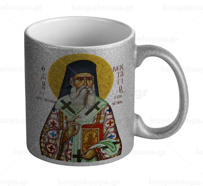 Saint Nektarios, Κούπα Ασημένια Glitter που γυαλίζει, κεραμική, 330ml